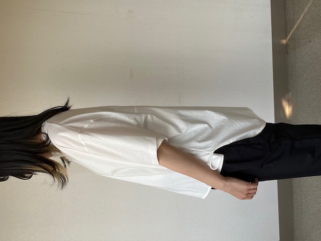 二の腕をしっかりとカバーできる長めのハーフスリーブと、ゆったりとしたオーバーサイズシルエットが今の気分にぴったり。前後差もあるため一枚での着用もサマになります。カジュアルなTシャツでありながらも、詰まりすぎていないネックラインが女性らしい印象に。ハイゲージで編立し、カラッと天日干しをした様な色落ち感と風合いも夏らしい着心地。デニムやスラックスなどシンプルなボトムとのスタイリングはもちろん、インナー使いにも最適です。
