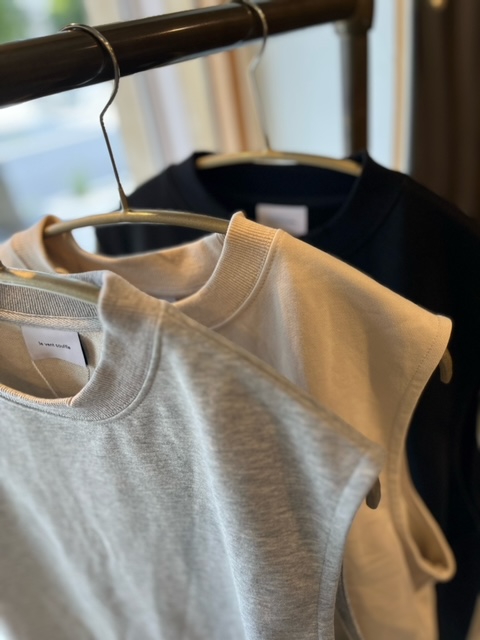 メンズのスウェットの袖をカットしてリメイクをしたゆるっとしたベスト